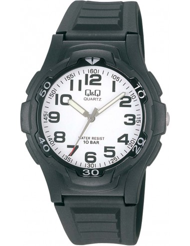 Aδιάβροχο πλαστικό ρολόι χειρός Q&Q με ευανάγνωστα νούμερα.